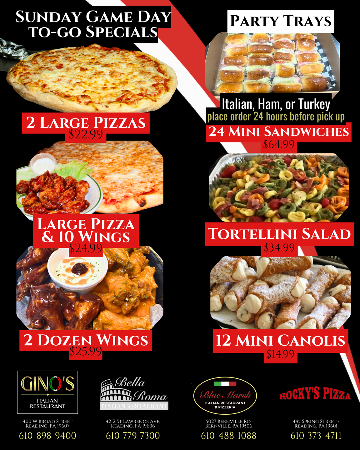 Looking to elevate your special event or gathering? Look no further than Blue Marsh Italian Restaurant & Pizzeria for all your catering needs! Our catering services specialize in bringing the authentic flavors of Italy straight to your event, be it a family reunion, corporate function, or any other noteworthy occasion. Allow us to handle the culinary details while you focus on creating unforgettable moments with your guests. Get in touch with us today to start planning and ensure your event is a resounding success.